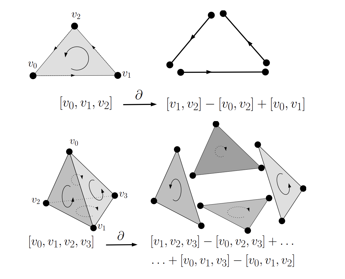 \[\iip{d\alpha, \beta} = \iip{\alpha, \delta \beta}\]First, note that I treated abstract simplicial complex just a combinatorial generalization of graph. But in some other materials, we can give a notion of volume on each simplex.